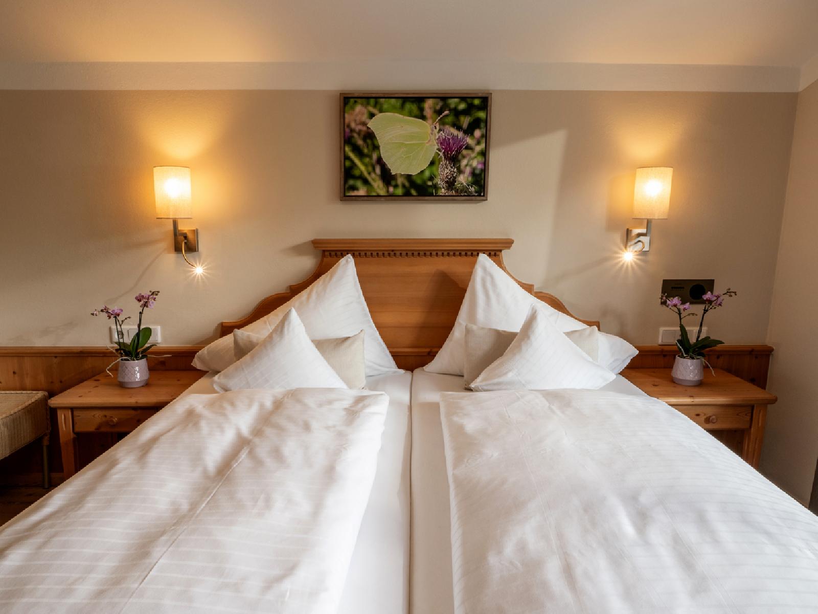 Hinweis: die Zimmer befinden sich im Hotel Kirchberger Hof oder in der Villa Lisa, die Zuteilung erfolgt bei Check In vor Ort.