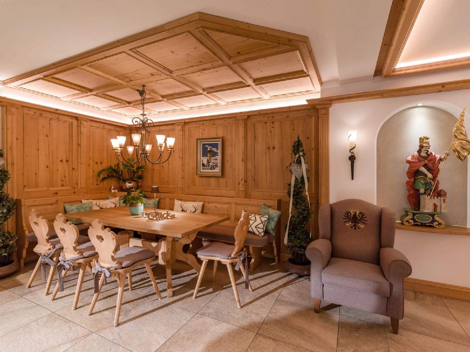 Das freundliche Hotel bietet Dir neben den insgesamt 44 Wohneinheiten eine einladende Empfangshalle mit Sitzgelegenheit, eine Rezeption, einen Innenpool, eine Terrasse und eine E-Auto Ladestation sowie einen schönen Wellnessbereich (ca. 280 m²) u.a. mit Sauna, Dampfbad, Erlebnisdusche und Infrarotkabine. Deine Unterkunft besteht aus einem Haupthaus und dem Nebenhaus "Alpen Glück Villa Lisa" mit 4 Sternen und 17 Wohneinheiten, wobei Haupt- und Nebengebäude ca. 25 m voneinander entfernt sind. Für Dein leibliches Wohl stehen Dir die Hotelbar sowie ein Stüberl zur Verfügung. Für Deine Wintersportausrüstung steht ein abschließbarer Ski- und Snowboard-Abstellraum zur Verfügung.