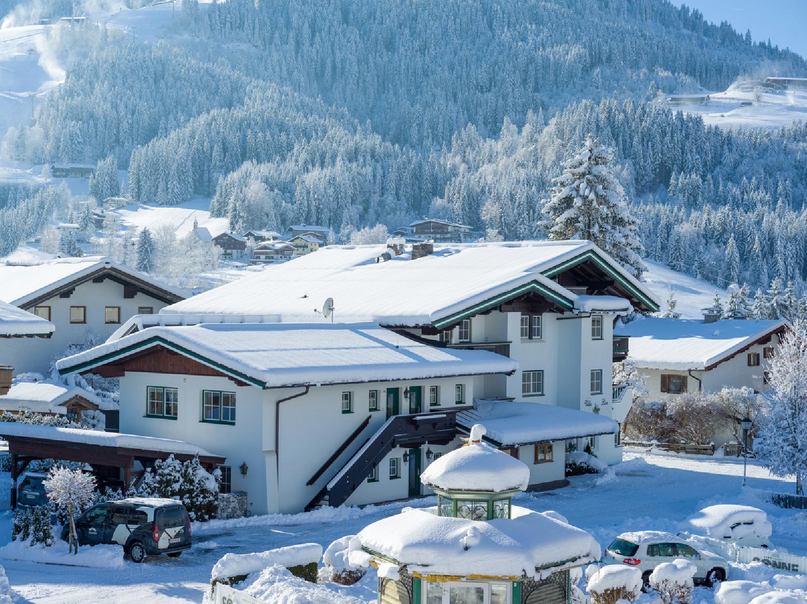 Das Hotel befindet sich rund 500 m vom Zentrum entfernt. Cafés und Restaurants erreichen Sie nach ca. 150 m, die nächsten Einkaufsmöglichkeiten sind ungefähr 600 m von Ihrem Feriendomizil entfernt. Für Wintersportler ideal: Die Bergbahn Sesselbahn Gaisberg liegt etwa 900 m vom Haus entfernt und bietet direkten Zugang ins Skigebiet. Auch abwechslungsreiche Ausflüge lohnen sich – unsere Tipps: ein Besuch in Kitzbühel (ca. 7,5 km) oder eine Fahrt zum Bergsee Obergaisberg, der im Winter mit seiner verschneiten Kulisse zum Spazieren einlädt.