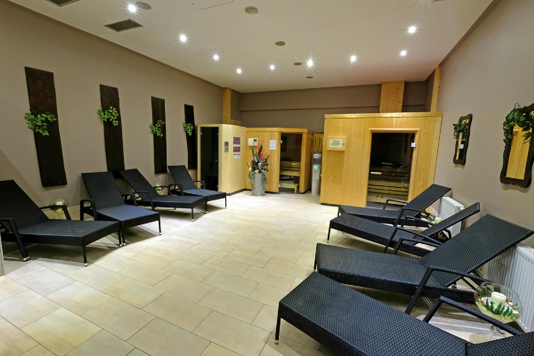 - Tägliche Nutzung des ca. 200 m² großen Wellnessbereichs von 10:00 - 22:00 Uhr mit folgenden Einrichtungen: