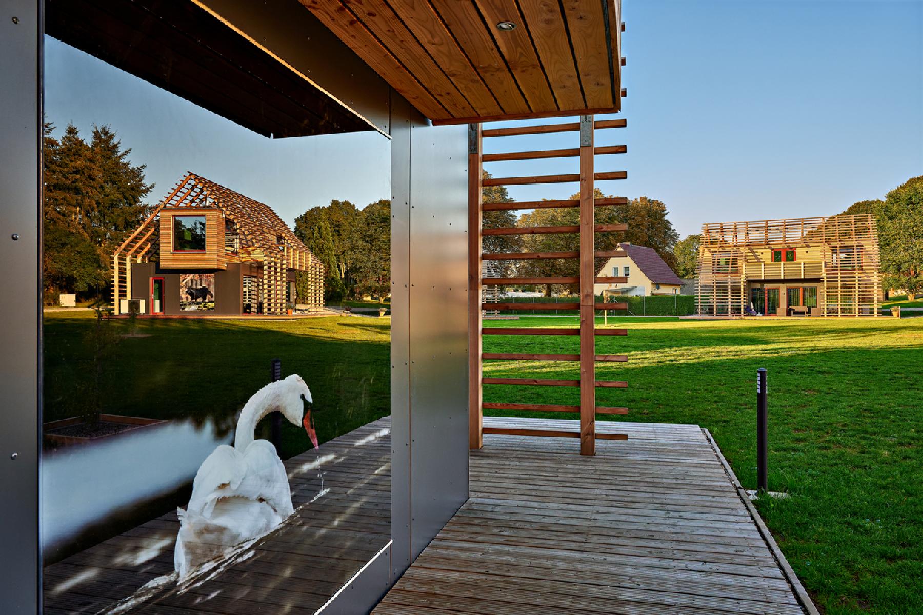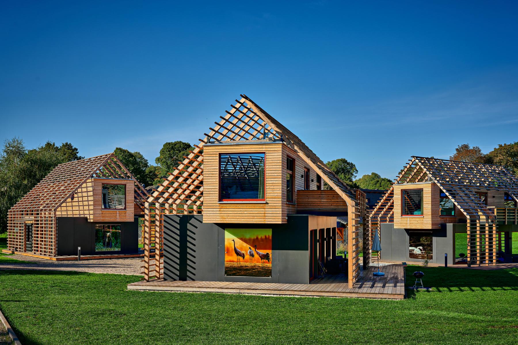 Die Chalets bieten eine Fläche von ca. 80 m² und bestehen aus einem Wohnraum sowie zwei separaten Schlafzimmern mit jeweils einem Doppelbett. Die Küche ist voll ausgestattet mit Kühlschrank, Kaffeemaschine, Wasserkocher, Toaster, Backofen, Herdplatte, Spülmaschine und allen notwendigen Utensilien. Das Badezimmer verfügt über eine Badewanne oder Dusche/WC sowie einen Haartrockner. Zusätzlich gibt es ein weiteres WC. Zur Ausstattung gehören ein Flachbild-TV mit Sat-TV, ein Sofa, ein Bügeleisen und eine Waschmaschine. Im Außenbereich stehen Gartenmöbel, ein Essbereich im Freien, ein Grill und ein Balkon zur Verfügung.