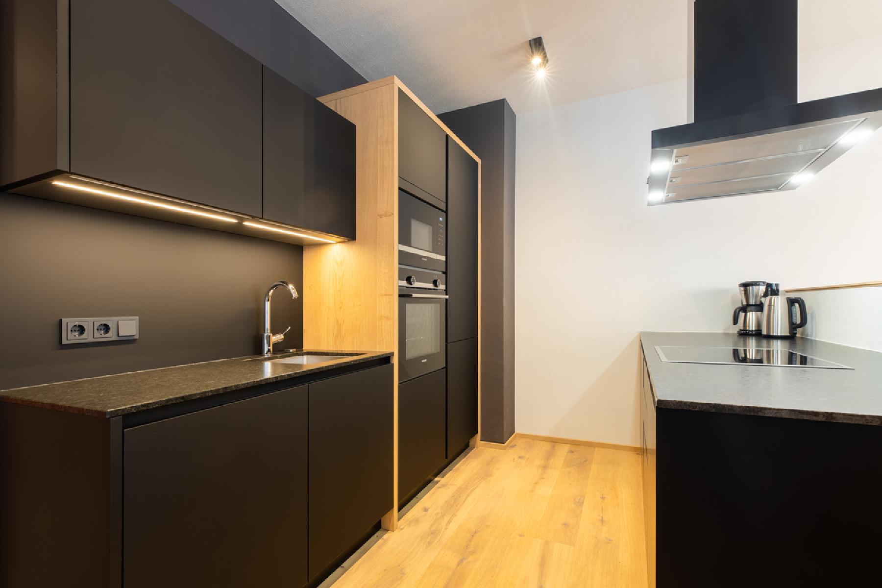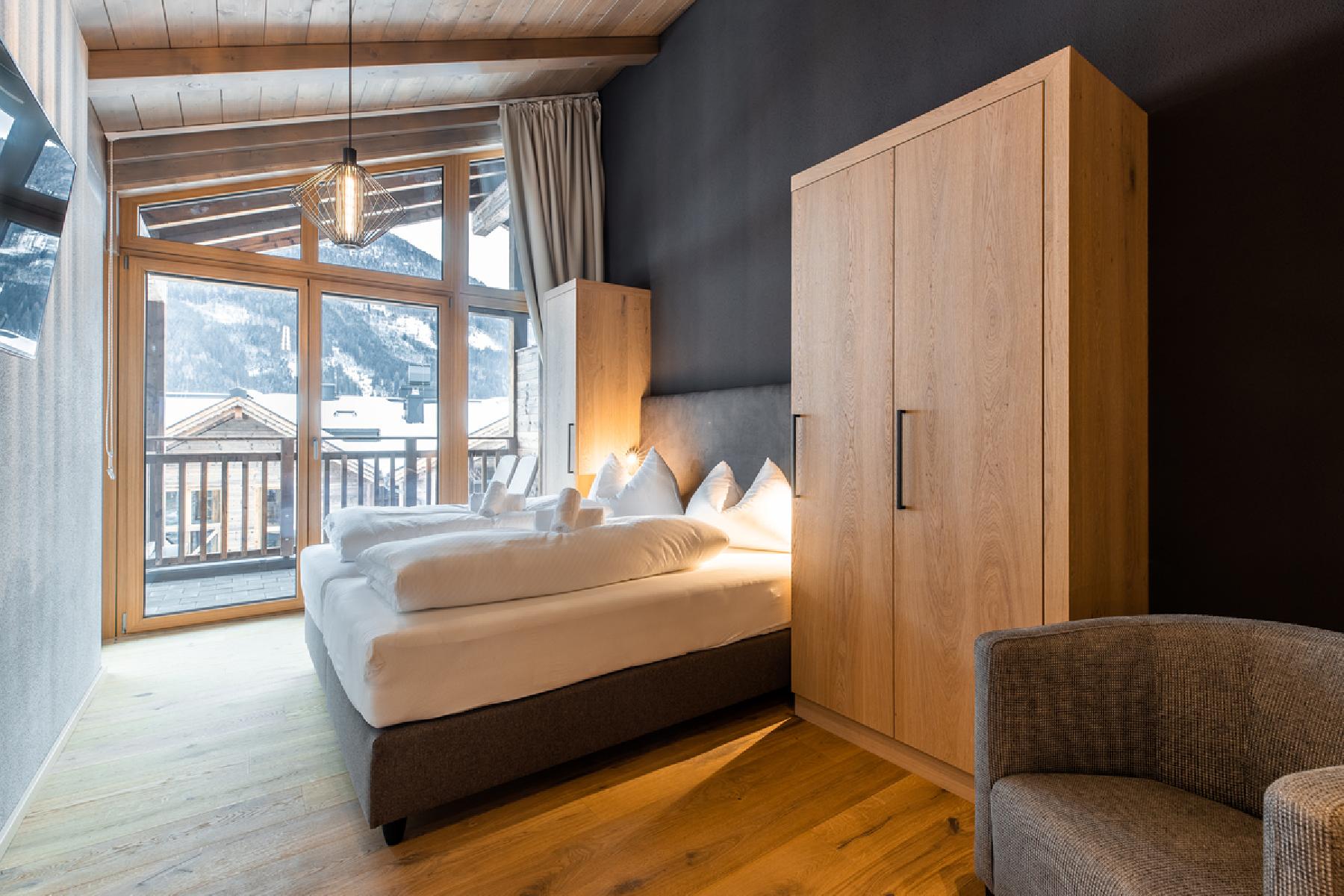 **1A** - Die modernen und gemütlichen Appartements Typ 1A verfügen über Flat-Screen-TV, Sitzgelegenheit, Essgelegenheit, ein Badezimmer (Dusche oder Badewanne, WC) und einen Balkon oder Terrasse. Die Appartements bestehen aus einem Schlafraum, einen Wohnraum und verfügen über eine Küche (mit Mikrowelle, Herd mit 4 Kochplatten, Wasserkocher, Kaffeemaschine, Kühlschrank, Geschirrspüler, Geschirr und Backofen). Im Schlafraum steht ein Doppel-Boxspringbett zur Verfügung. Die durchschnittliche Größe der Appartements beträgt ca. 56 m².