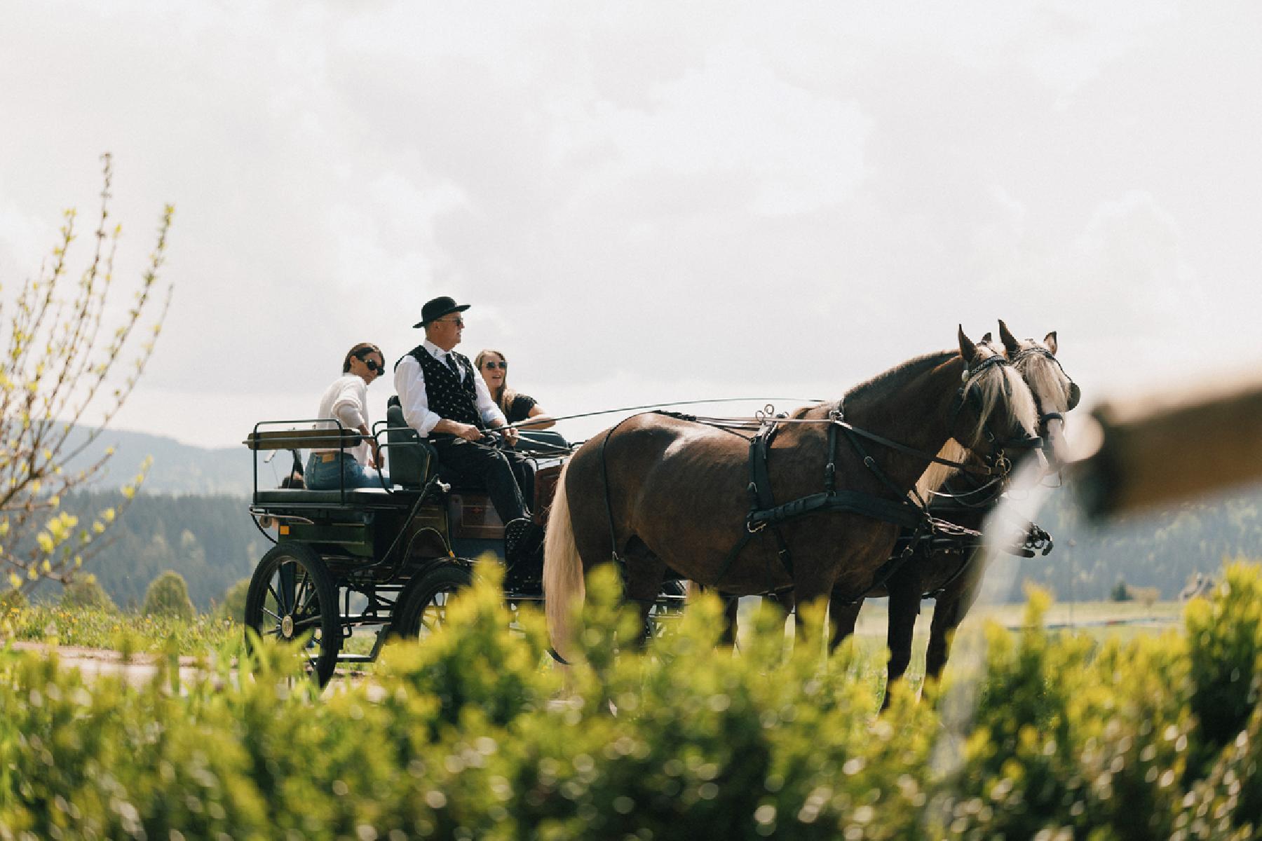 Eingebettet in die ruhige Hügellandschaft des Schwarzwaldes liegt das Hotel Der Hirschen in St. Märgen auf etwa 900 m Höhe. Das Ortszentrum ist nur ca. 200 m entfernt und bietet kleine Geschäfte sowie Gastronomie. Sehenswürdigkeiten wie das Kloster St. Märgen befinden sich direkt im Ort. Beliebte Ausflugsziele wie der Thurner (ca. 4 km) und die Ravennaschlucht (ca. 12 km) sind gut erreichbar, die Stadt Freiburg im Breisgau liegt ca. 20 km entfernt. Im Sommer lädt die Region zu ausgedehnten Wanderungen, Radtouren und Naturerlebnissen in der klaren Schwarzwaldluft ein. Im Winter starten direkt am Hotel Winterwanderwege und Langlaufloipen.