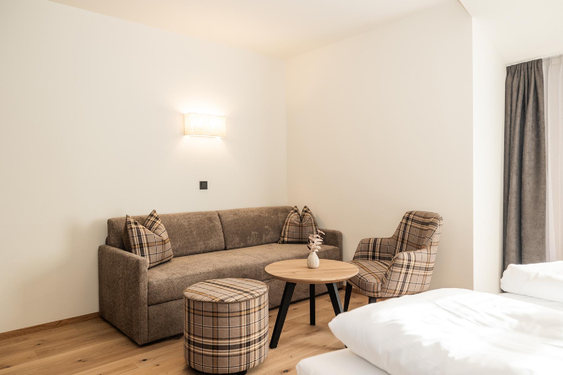 Die komfortablen und hellen Zimmer verfügen über SAT-TV mit integriertem Radio, Telefon, Dusche, WC, Haartrockner und einen Balkon. Die Zimmer bestehen aus einem Schlafraum mit einem Doppelbett sowie einem Wohnschlafraum mit 2 fixen Einzelbetten. Die durchschnittliche Zimmergröße beträgt ca. zwischen 35 und 45 m².