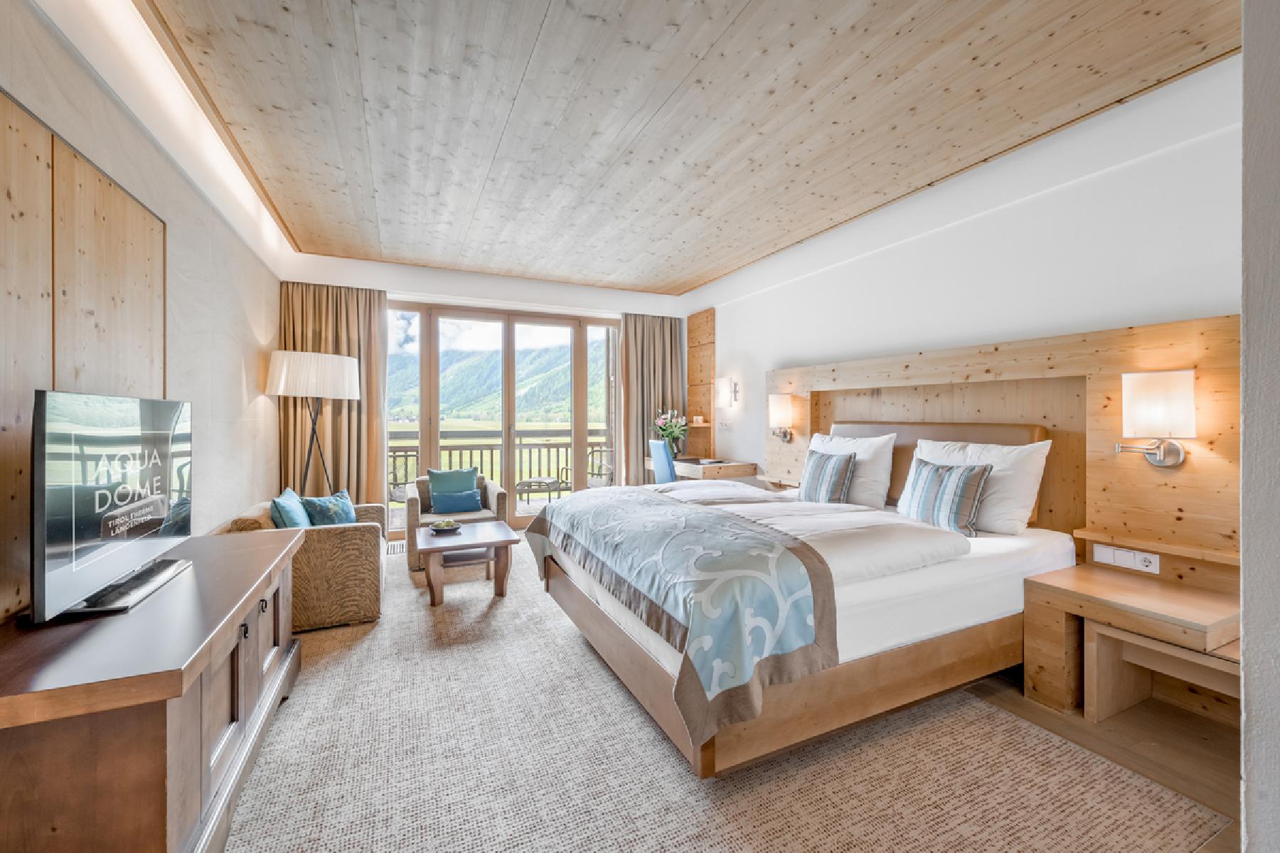 Das komfortable, familienfreundliche Hotel AQUA DOME mit 4 Sternen Superior bietet dir neben insgesamt 200 Zimmern und Suiten eine einladende Empfangshalle mit Sitzgelegenheiten, eine Rezeption, eine E-Auto Ladestation, eine Kaminlounge sowie einen ca. 2.000 m² großen Hotelspa mit verschiedenen Saunen, Dampfbädern, Infrarotkabine und vielem mehr. Für dein leibliches Wohl stehen ein Restaurant und die Hotelbar zur Verfügung. Tipp: Die Kulinarik ist hier eine regional-nachhaltige Reise rund um den Alpenbogen. Weil man gemeinsam besser is(s)t.