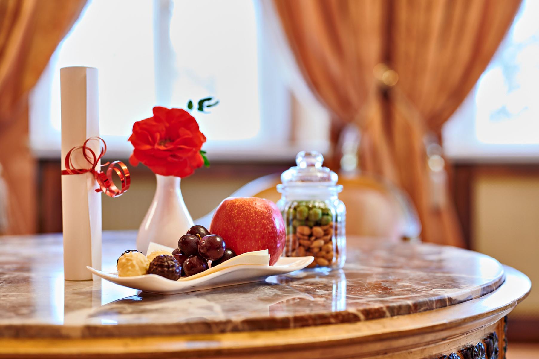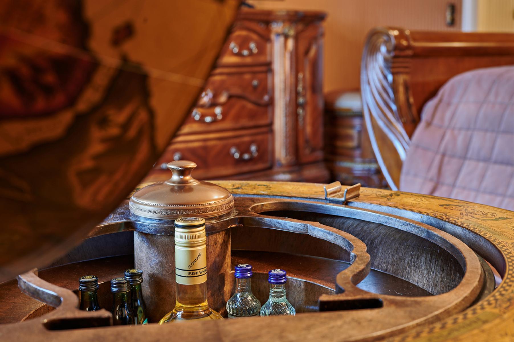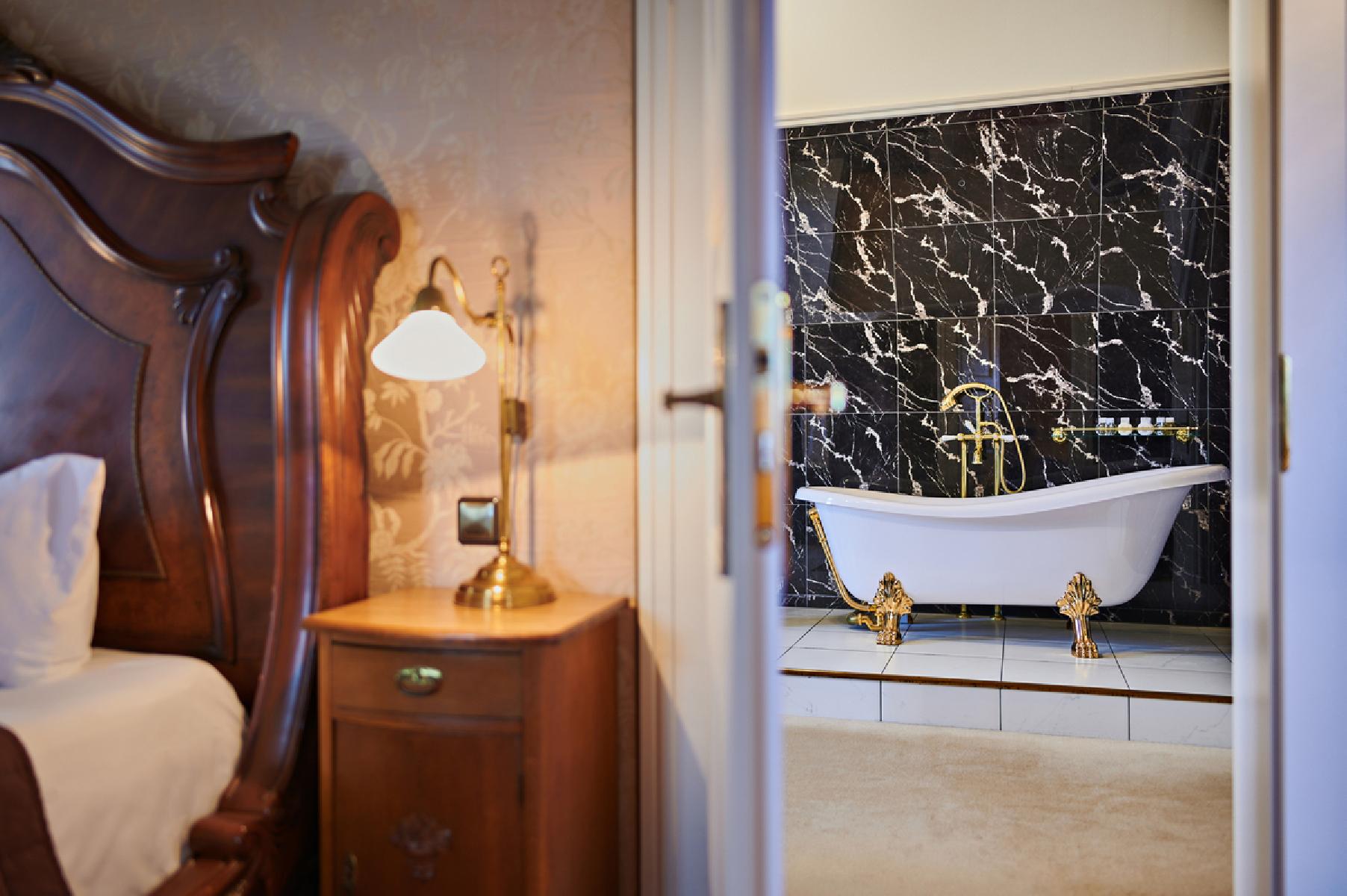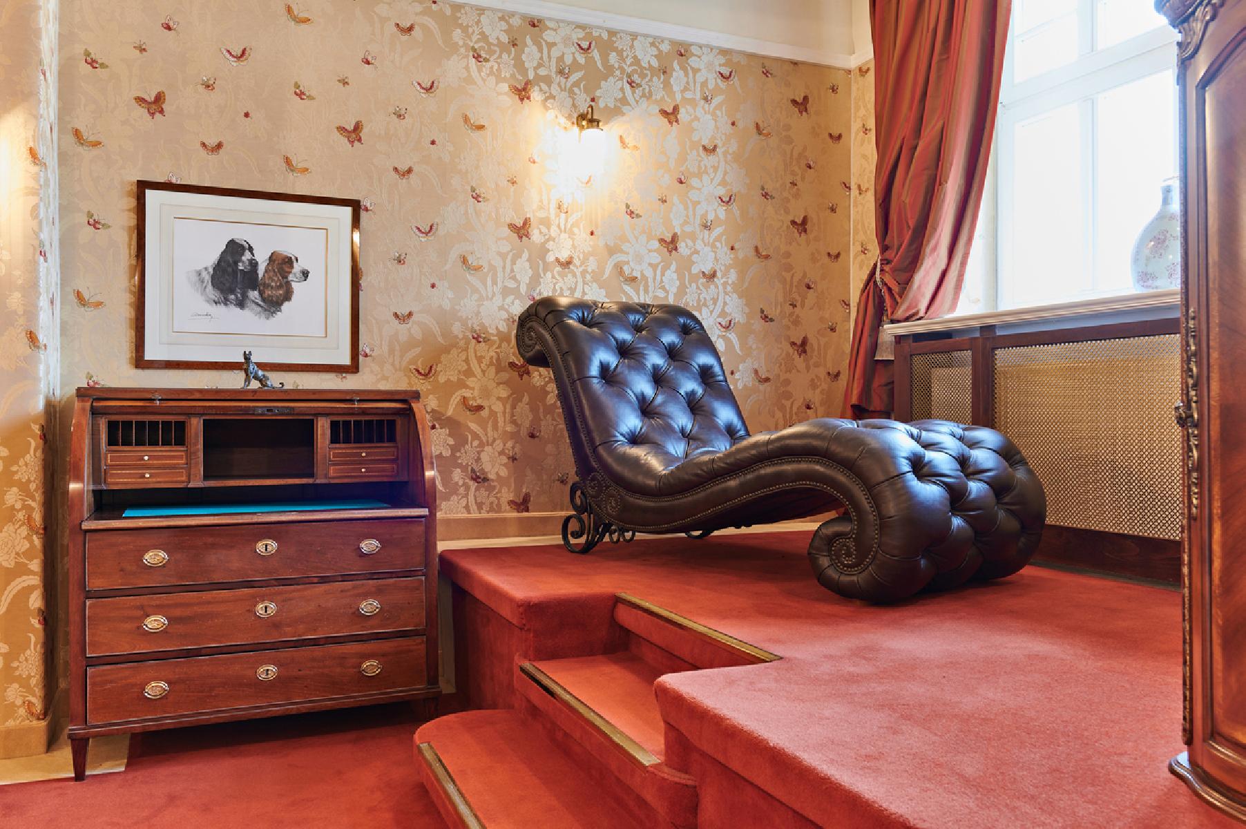 Die Suiten befinden sich im historischen Schloss und bieten ca. 75 m² Platz. Sie umfassen ein Schlafzimmer mit einem Doppelbett sowie einen Wohnschlafraum mit Doppelschlafsofa. Zur Ausstattung gehören eine Minibar, ein Schreibtisch ein und eine Badewanne oder eine Dusche, WC mit Föhn und Kosmetikspiegel sowie ein Bademantel. Genießen Sie den Gartenblick während Sie Ihren Kaffee oder Tee zubereiten. Zur weiteren Ausstattung gehört ein Flachbild-TV.