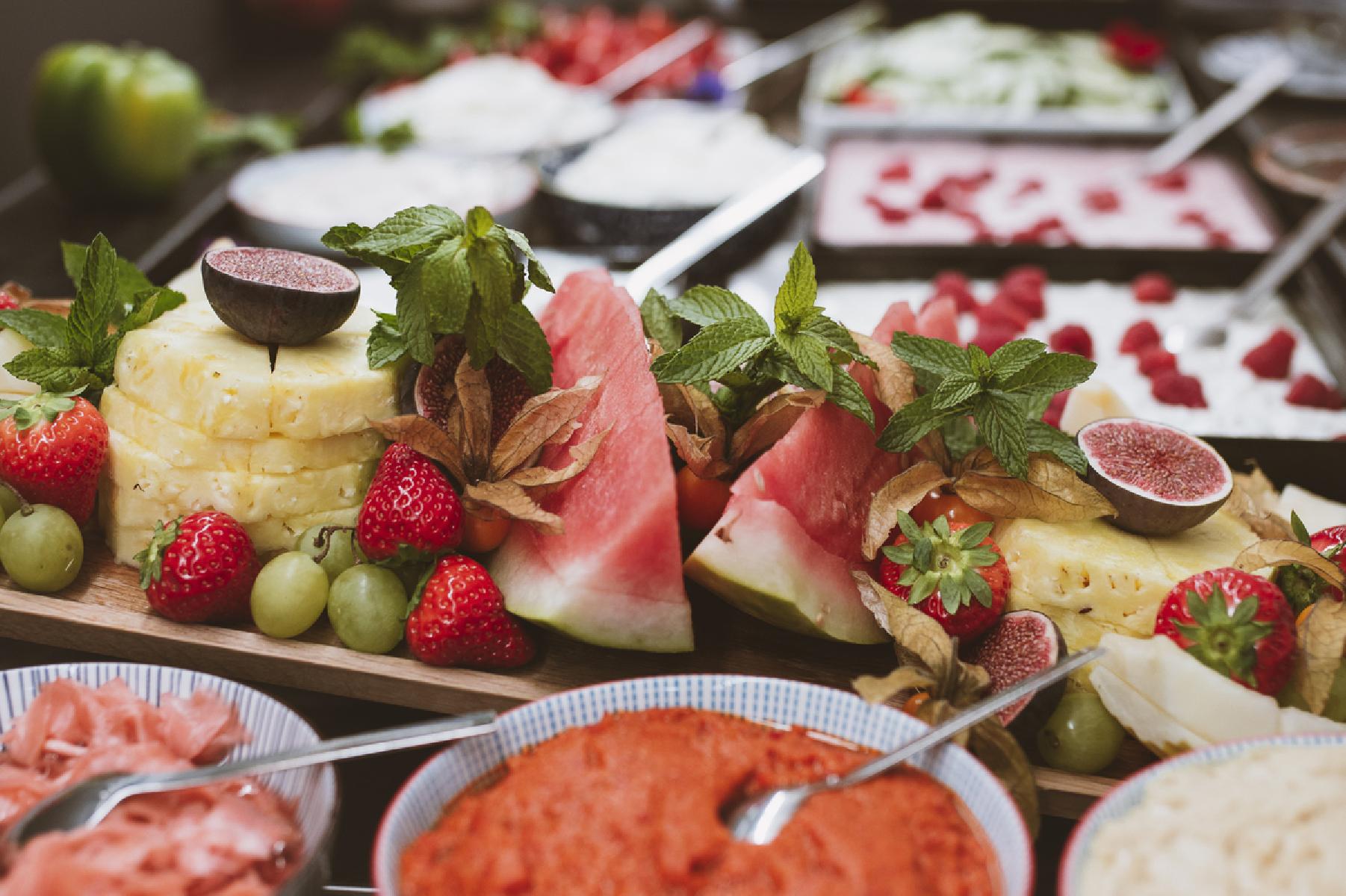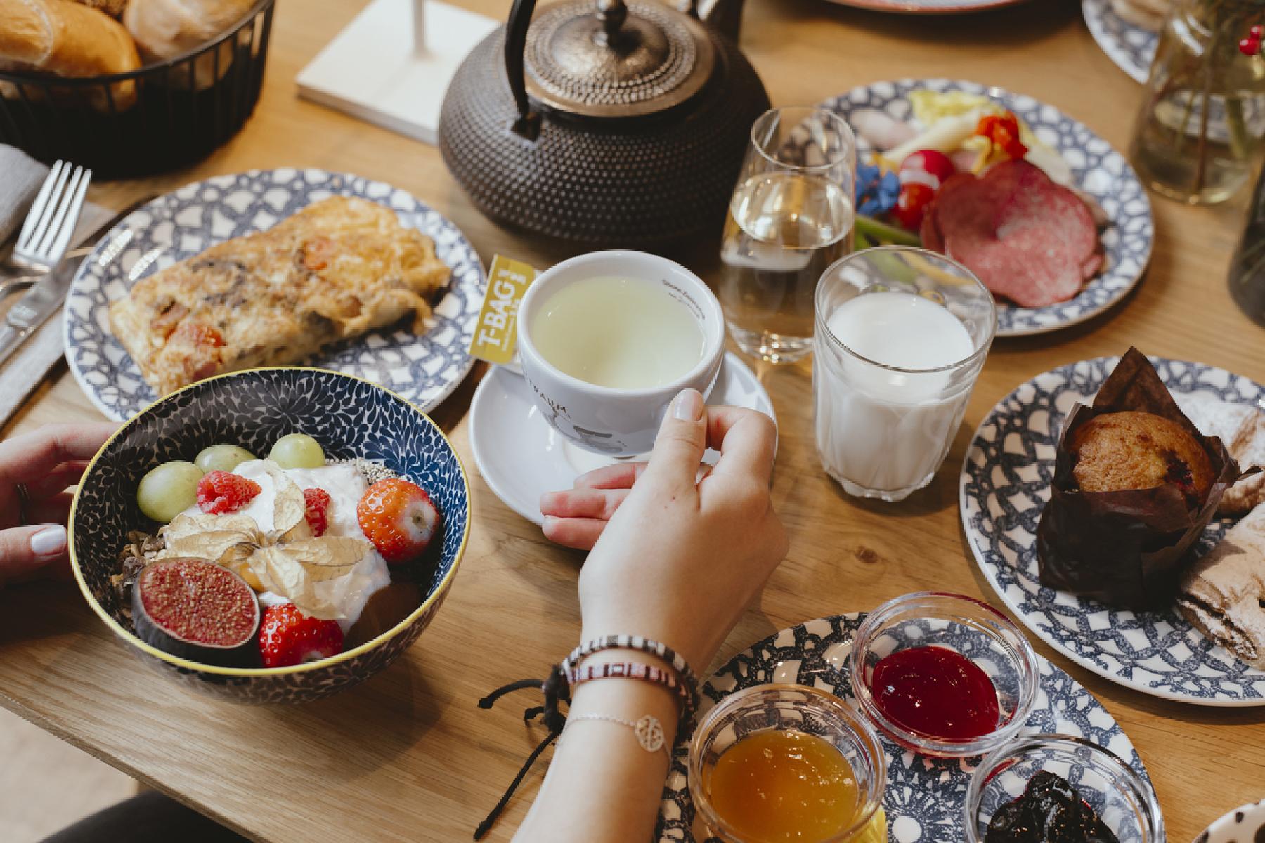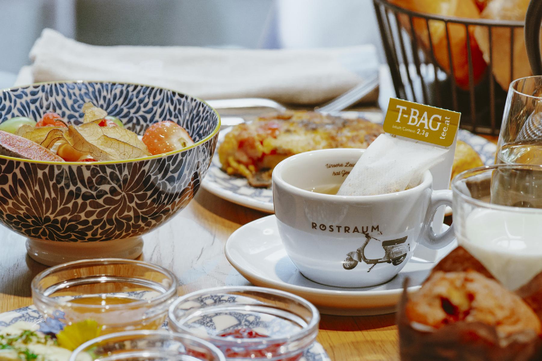 - Genussvolles Frühstücksbuffet mit z.B. ausgewählte Kaffee- und Teespezialitäten, Ofenwarmes, Selbstgemachtes, Gebackenes, Eingelegtes, Eingekochtes und Gebratenes, Eierspeisen von regionalen Eiern, Käse aus dem Salzburger Land und Schinken- und Wurstwaren vom heimischen Fleischer