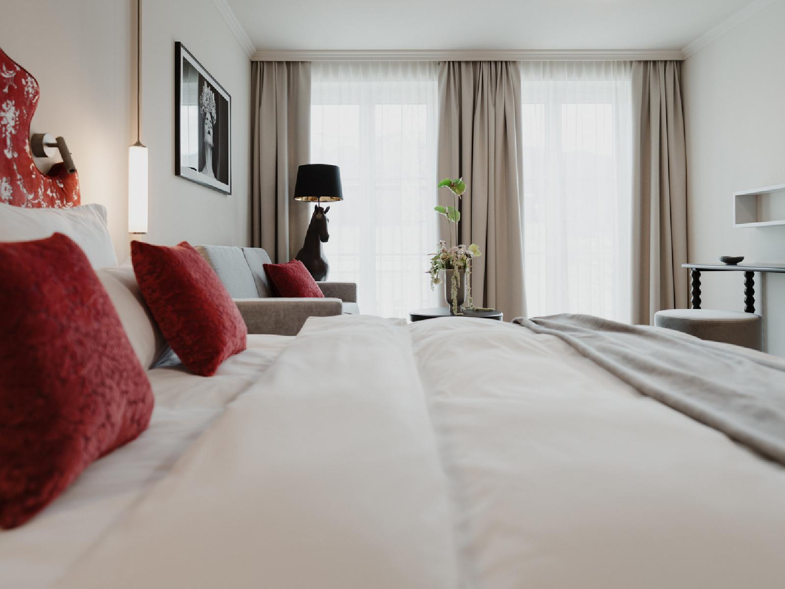 Die individuell eingerichteten Zimmer verfügen über TV, einen Flat-Screen-Fernseher, Telefon, einen kleinen Kühlschrank, Dusche, WC und Haartrockner. Die Zimmer bestehen aus einem Schlafraum mit einem Doppelbett und einem Einzelschlafsofa. Die durchschnittliche Zimmergröße beträgt ca. 30 m².