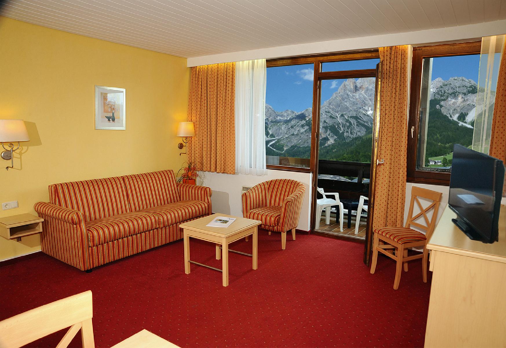 Die großzügigen Nichtraucher-Appartements verfügen über Flat-Screen-Fernseher mit Kabel-TV und integriertem Radio, Direktwahl-Telefon, Sitzgelegenheit, Dusche, WC, Haartrockner und Balkon oder Terrasse. Die Appartements bestehen aus einem Schlafraum, einem Wohnschlafraum und verfügen über eine Kitchenette (mit Mikrowelle, Wasserkocher, Kaffeemaschine, Kühlschrank und Geschirr). Der Wohnschlafraum verfügt über ein Doppelschlafsofa. Im Schlafraum steht ein Doppelbett zur Verfügung. Die durchschnittliche Größe der Appartements liegt ca. zwischen 41 und 45 m².