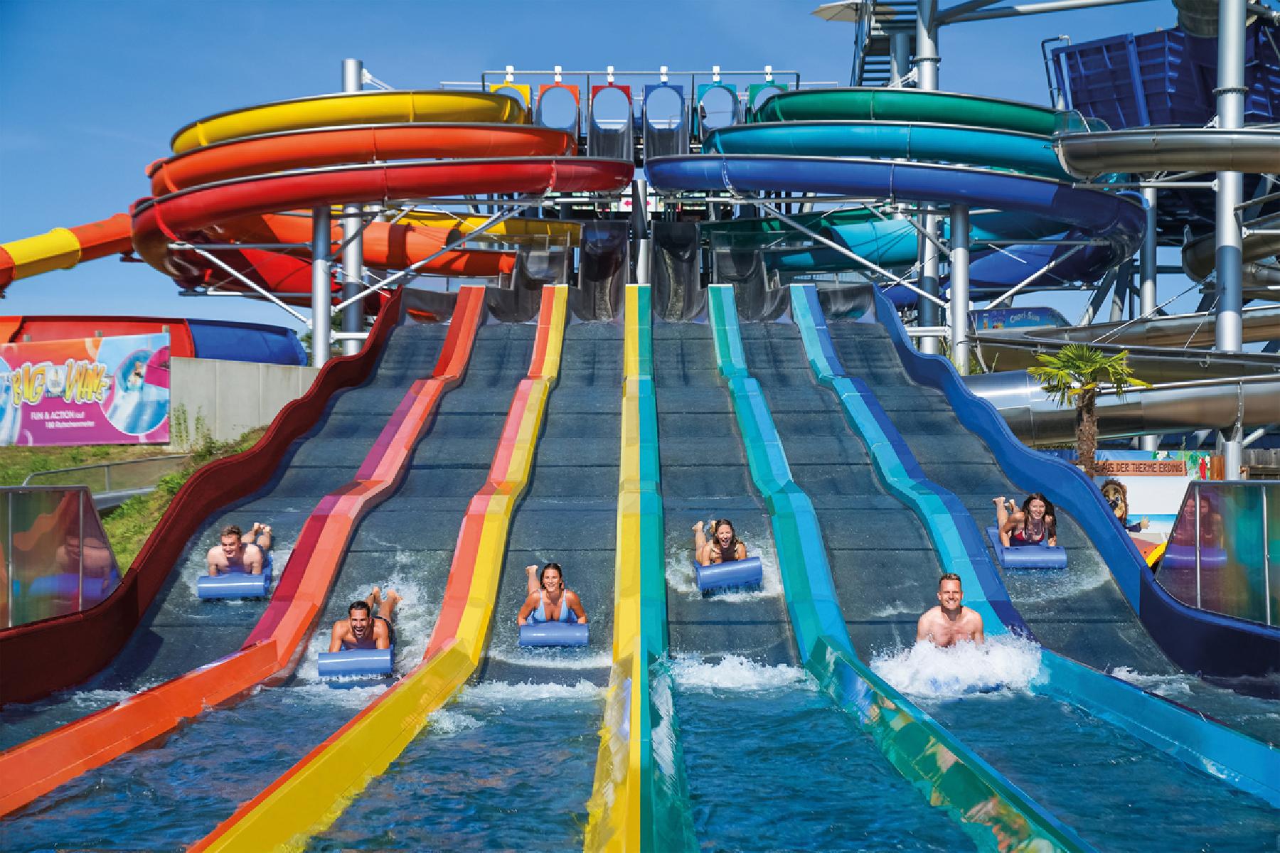 -- Erlebnisbereich mit zahlreichen Rutschen, Wellenbad und Wasserattraktionen für Groß und Klein