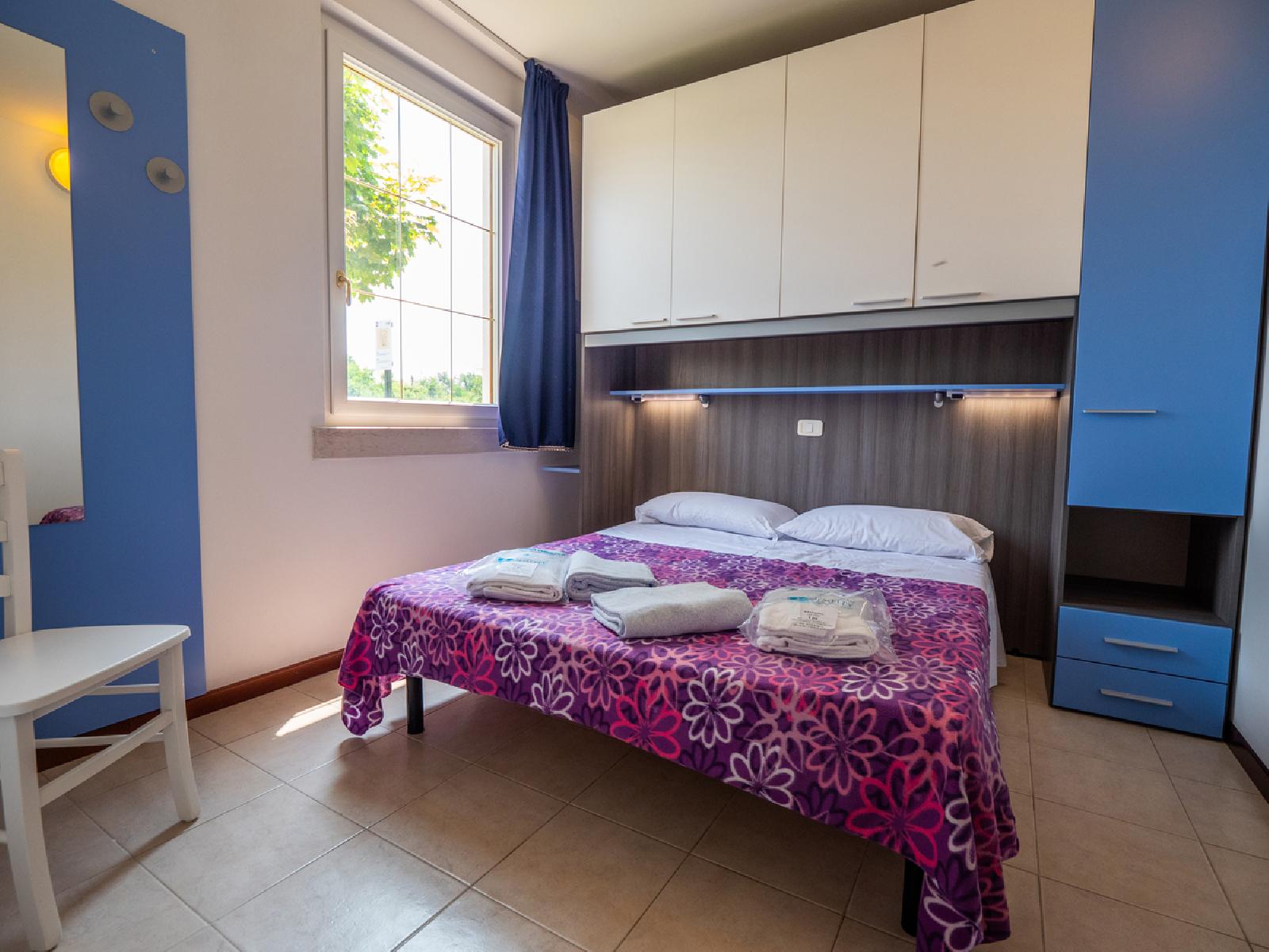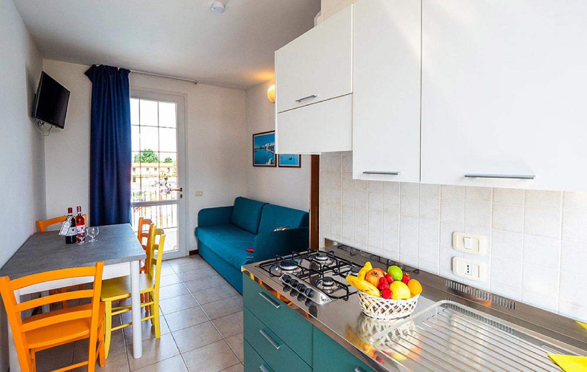 Die freundliche, 2017 teilweise renovierte Unterkunft besteht aus 120 Apartments, die entweder im Erdgeschoss mit eigenem Garten oder im ersten Stock mit Balkon ausgestattet sind. Im Zentrum der Anlage befindet sich ein großzügiger Lagunenpool mit Wasserrutschen und einem Wasserpark, der besonders für Kinder geeignet ist. Autos sind innerhalb des Feriendorfs nicht erlaubt, was für zusätzliche Sicherheit sorgt.