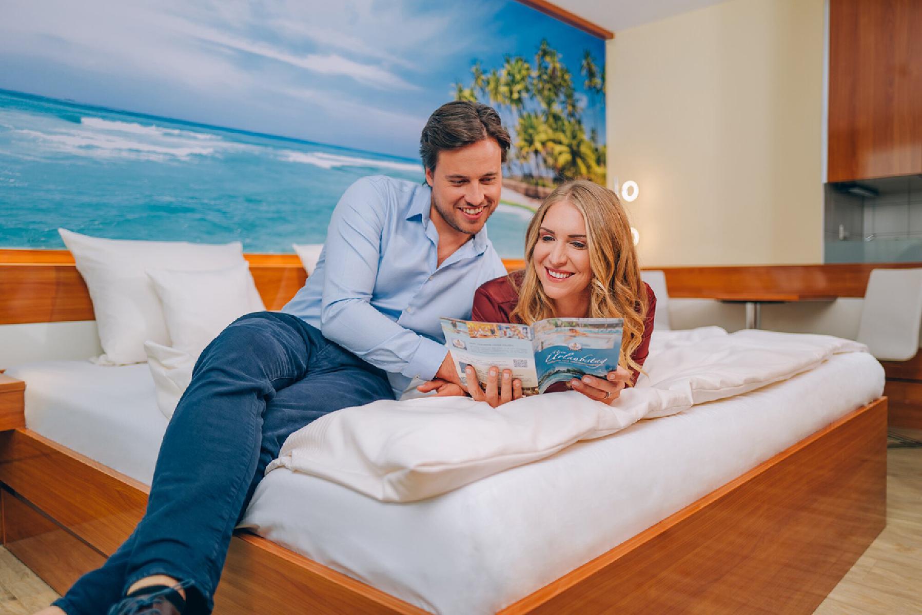 Einmalige Wohlfühlmomente erwarten Erholungssuchende ab 16 Jahren in den Wellnesswelten der VitalOase (textil) und der angrenzenden VitalTherme & Saunen (textilfrei). Einzigartige Gesundheits- und Saunaattraktionen laden ein, sich selbst zu verwöhnen und das abwechslungsreiche Aufgussprogramm krönt den Urlaubstag im paradiesischen Ambiente.